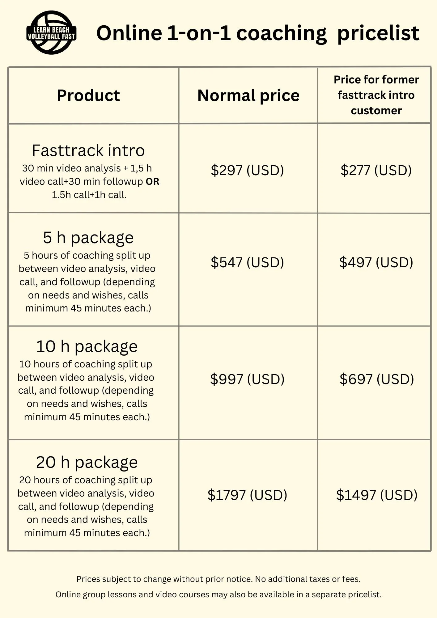 In case you want to sign up for a package or have questions, email me at alex@learnbeachvolleyballfast.com and write “Online coaching signup” as a headline.